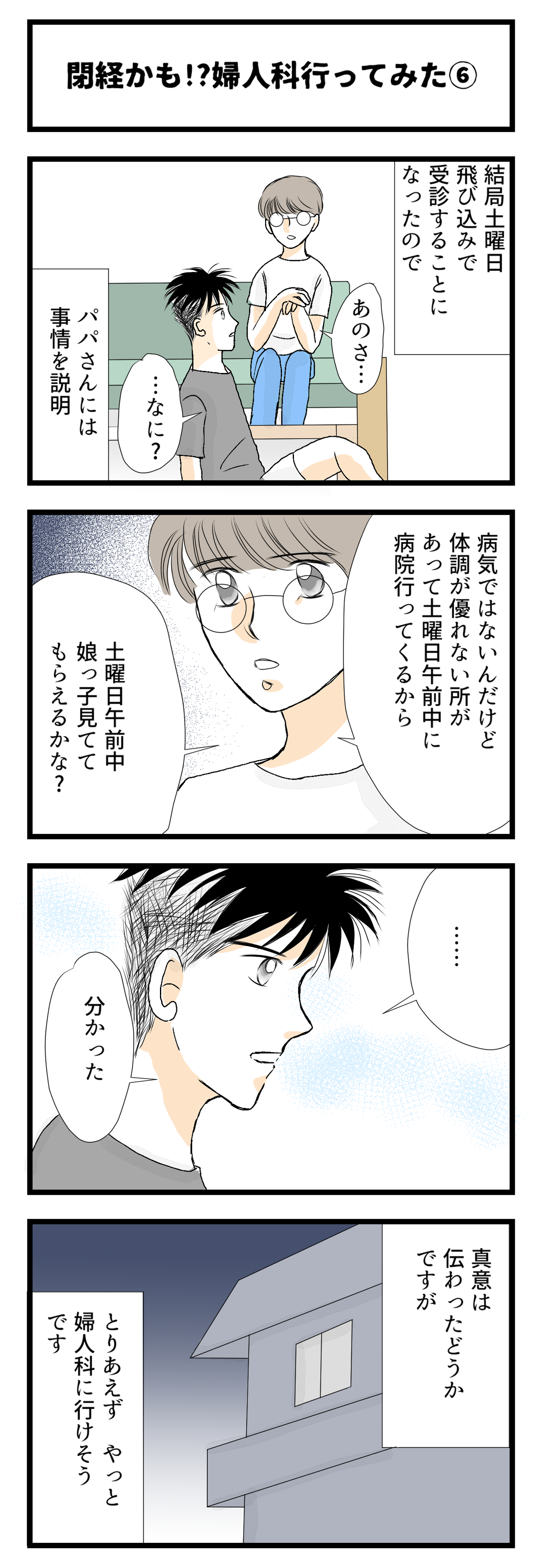 結局飛び込みで婦人科を受診することになったので、パパさんだけには説明しました。