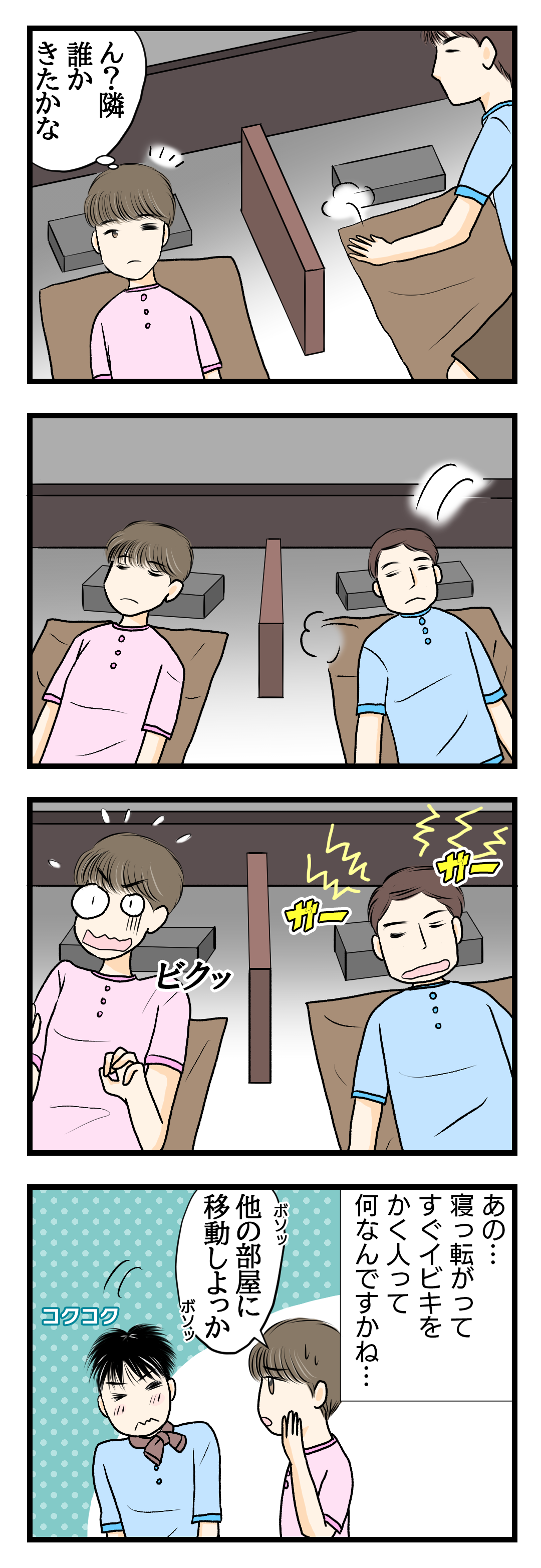 本当、電車とかでも、座ってて、すごいいびきかいてるおじさんとかいますよね…、