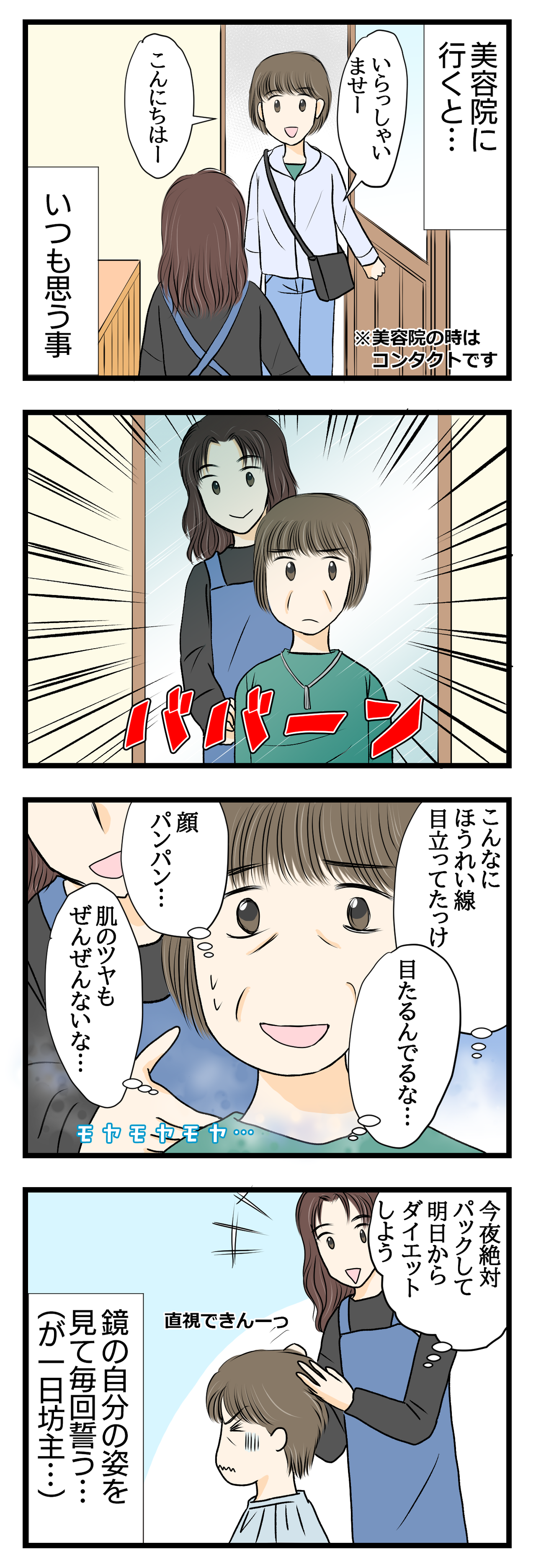 これも毎回美容院に行って思う所…、座った先にある、それは美容院の鏡…。