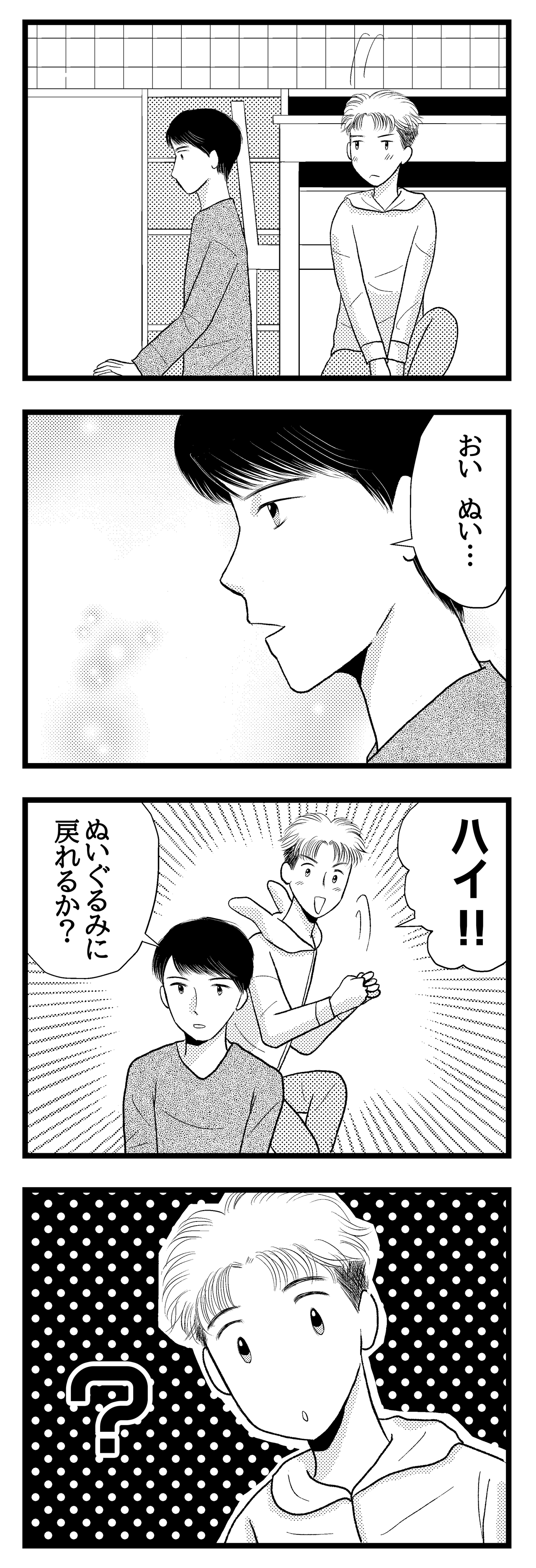 2025年12月21日 推しぬいの恩返し㊵パパさんが「ぬいぐるみに戻れ」という理由は…? 最初から読みたい方はバナーをクリックしてください 様子がおかしいパパさんが 「ぬいぐるみに戻れるか?」とな。 え?どうゆう事? よかったらポチっと1回押してください~♪人気ブログランキング 【ブログ連載/完結シリーズ】