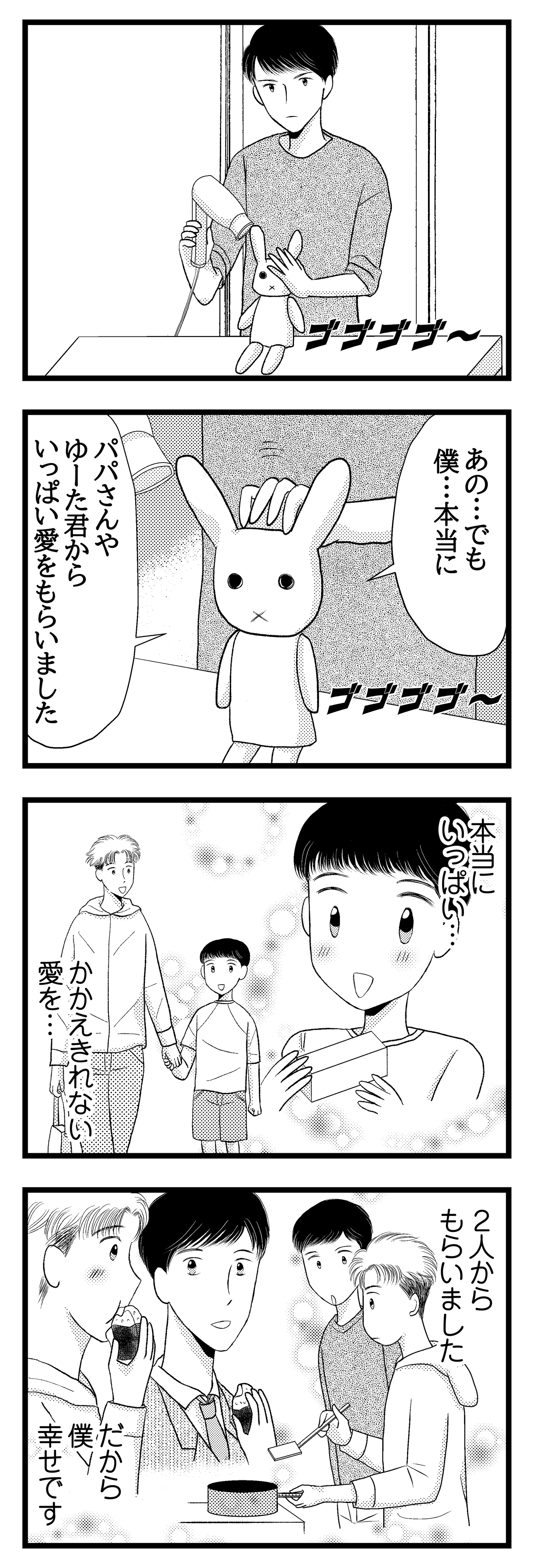 2025年12月28日 推しぬいの恩返し㊸僕は、ママさんもきっと幸せだったと思います。 最初から読みたい方はバナーをクリックしてください 短い期間、パパさんと悠太くんと過ごさせてもらって、いっぱい愛情もらったから。ママさんも、きっと幸せだったんじゃないかなと思うんだ。え?パパさん、本当…?この家の子になっていいの?よかったらポチっと1回押してください~♪人気ブログランキング 【ブログ連載/完結シリーズ】