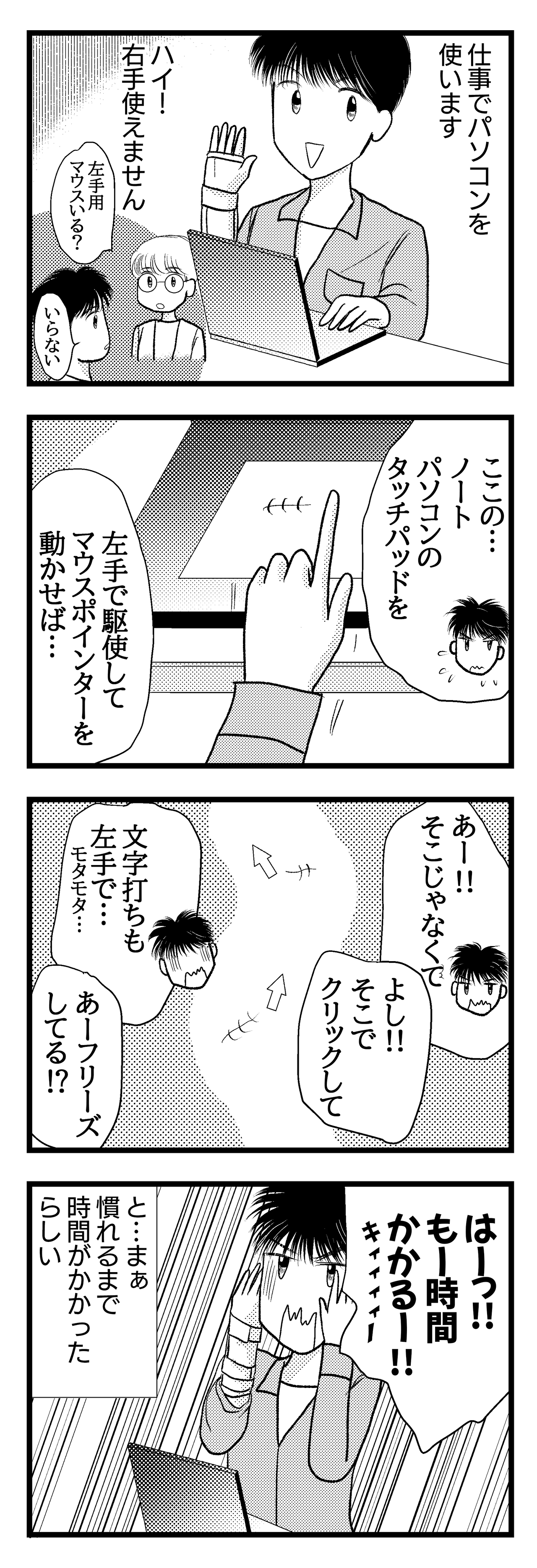 そりゃそうですよね…、日頃右手でススっと出来てたパソコン作業が、使ってなかった左手でやらないといけないんだもんね(;´д`)